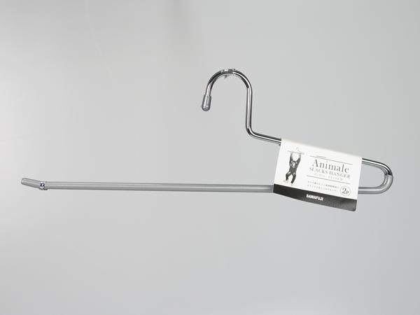 滑らないハンガー スラックスハンガー シルバー 2本組 AN-15-2P | ズボン収納 横掛けハンガー アニマーレ ノンスリップハンガー 金属製 パンツハンガー ストール収納 マフラー収納 おしゃれ 省スペース