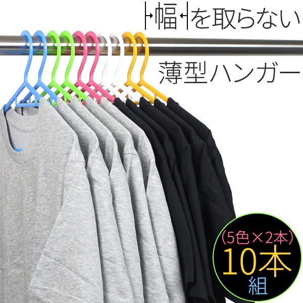 洗濯ハンガー スリムハンガー カラフル 10本組 SL-10 | 物干しハンガー 省スペース 薄型 衣類かけ 衣類干し 10P ハンガー