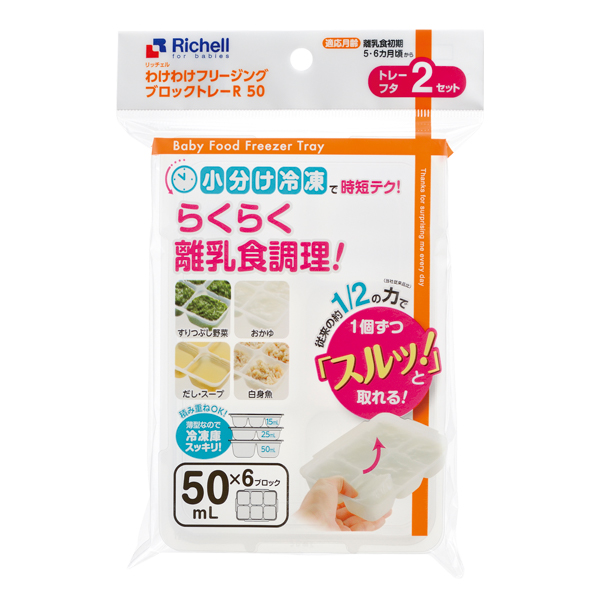 リッチェル 離乳食 冷凍保存 容器 わけわけフリージング ブロックトレーR 50 1ブロック50ml 2セット入り 93872 | 小分け 保存容器 作り置き 冷凍容器 ストック 冷凍トレイ ケース 出しやすい