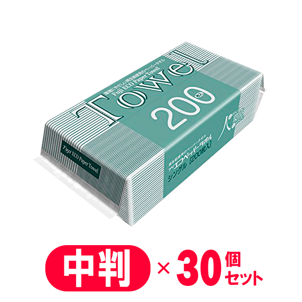 ペーパータオル ペーパータオル 中判サイズ 200枚入 ×30セット(ケース販売) | まとめ買い 中判 使い捨て トイレ 手拭き 紙 キッチン 手洗い 業務用 お買い得