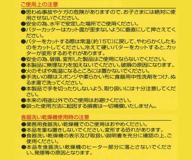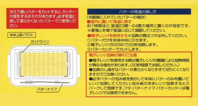 ご注意※バターをカットする際は、室内で常温に戻す、または電子レンジで加熱し、軟らかくしてご使用ください。