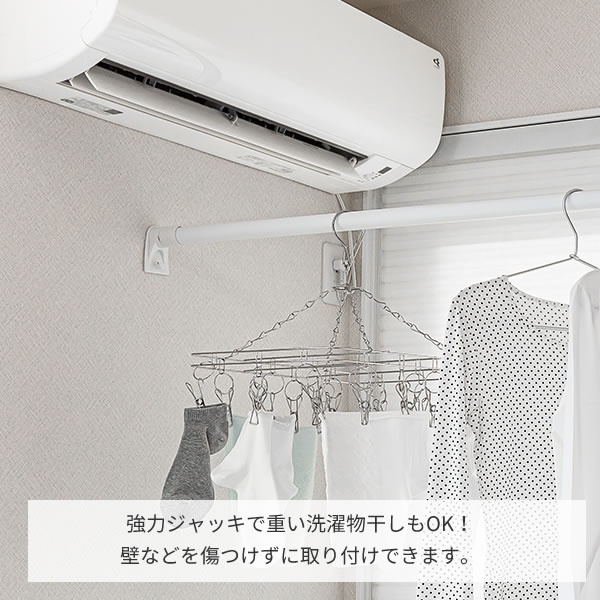 強力ジャッキで重い洗濯物干しもOK!壁などを傷つけずに取り付けできます。