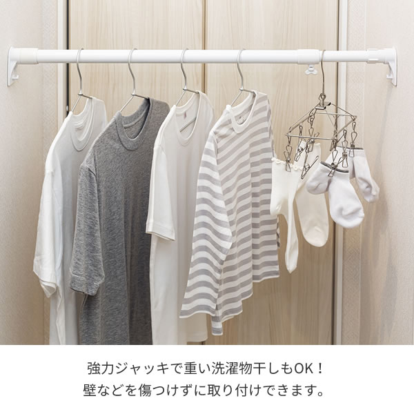 強力ジャッキで重い洗濯物干しもOK!壁などを傷つけずに取り付けできます。
