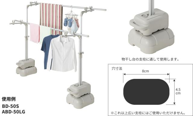 対応製品ステンレスものほし台ブロー台付きBD-50S・アルミものほしブロー台付きABD-50LG(物干し台の支柱に通して使えます)※「ステンレスものほし台ブロー台付きSB-300」には使えません。