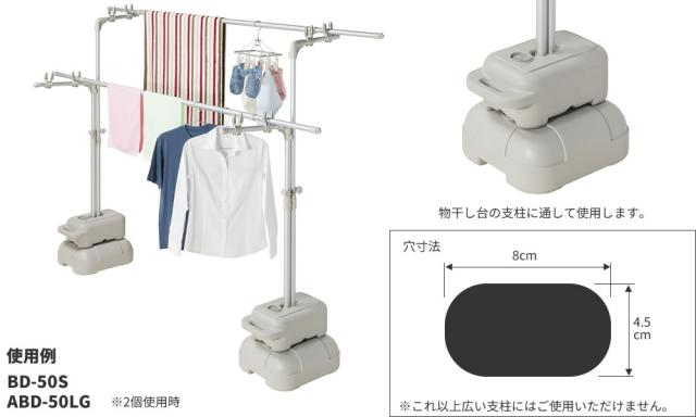 対応製品ステンレスものほし台ブロー台付きBD-50S・アルミものほしブロー台付きABD-50LG(物干し台の支柱に通して使えます)※「ステンレスものほし台ブロー台付きSB-300」には使えません。