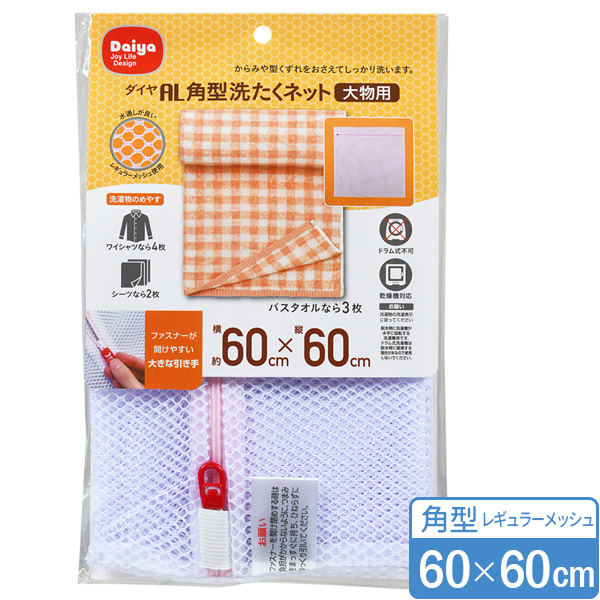 洗濯ネット AL 角型 洗たくネット(大物用) 60×60cm | ランドリーネット 洗濯機 ネット 粗目 大物用 バスタオル シーツ 傷みを抑える からみ防止 すり切れ防止 ファスナーカバー 大型