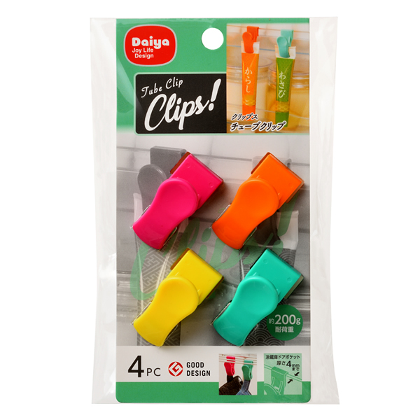 クリップス チューブクリップ 4個入 | フッククリップ フック付き クリップ 冷蔵庫 ポケット 薬味チューブ ぶら下げ 収納 折り曲げ 整理 便利グッズ 調味料 わさび からし