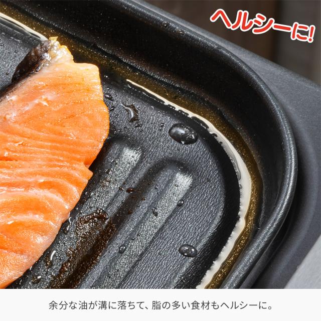 グリルやオーブントースターを使って調理ができる、フッ素樹脂加工のグリルパン。