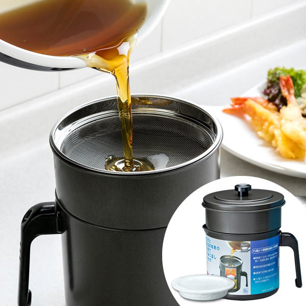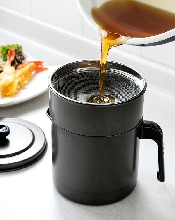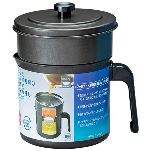 オイルポット フッ素コート 活性炭油ろ過ポット 0.9L フィルター付き ( 油こし 油ポット )