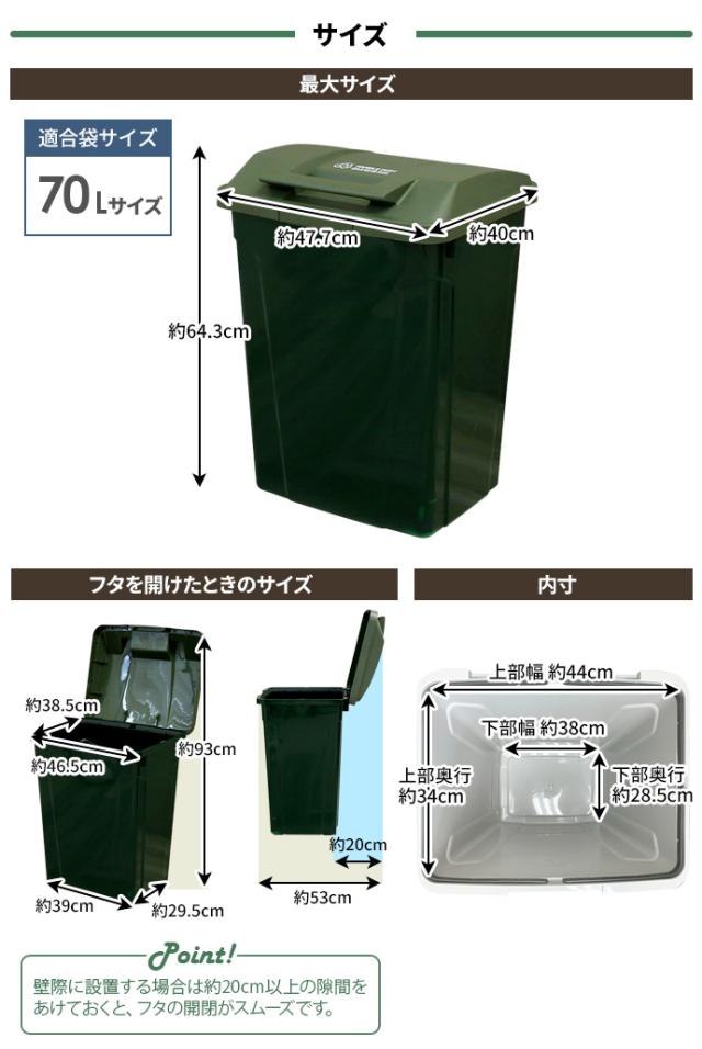 ゴミ箱 屋外 SPハンドル付 ダストボックス 70L グリーン A6727 | ごみ箱 おしゃれ 大容量 分別 ふた付き