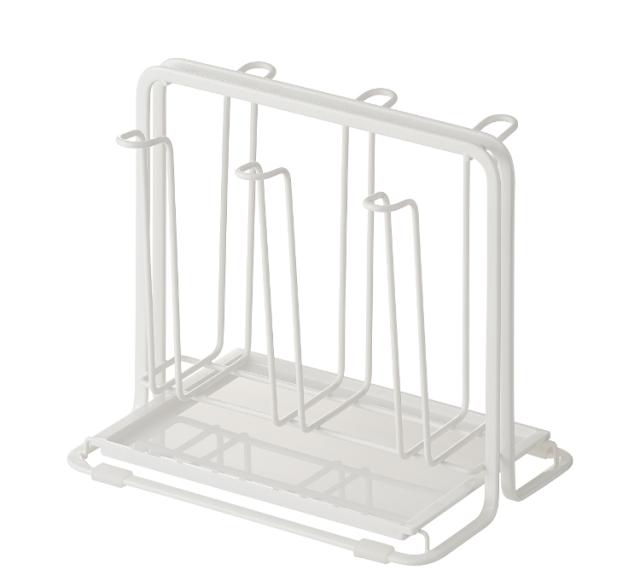 洗ったコップやグラス、ペットボトルなどを立てて水切りできる白いコップスタンド。