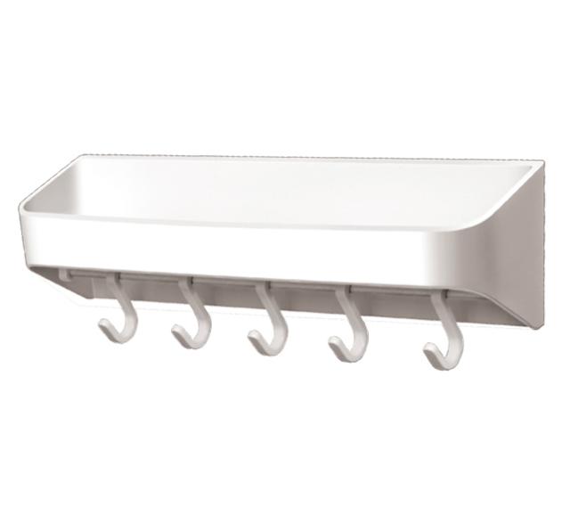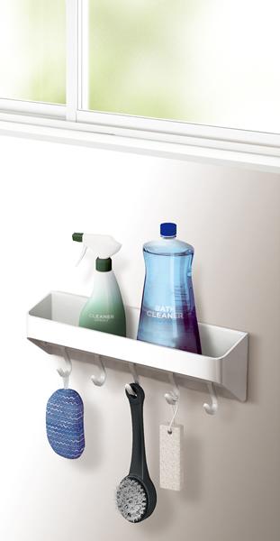 洗剤トレイ フック 小物置き マグネット バス用品 収納 ラック ホルダー ケース スタンド トレイ トレー 5連フック付き 掛ける 吊り下げる 掃除用具 せっけん ソープ 置き 収納 壁面収納 デッドスペース 有効活用 空間活用 浮かせる収納 ぬめり防止 水切り穴 スリット付き 衛生的 清潔 浴室 風呂 お風呂 お風呂場 バスルーム バスグッズ 風呂用品 洗濯機横 洗面所 幅30.4 奥行76.6 高さ9.8 センチ cm 耐荷重2.5kg シンプル スマート スタイリッシュ モダン おしゃれ おすすめ 便利 人気 使いやすい 白 4974908586590
