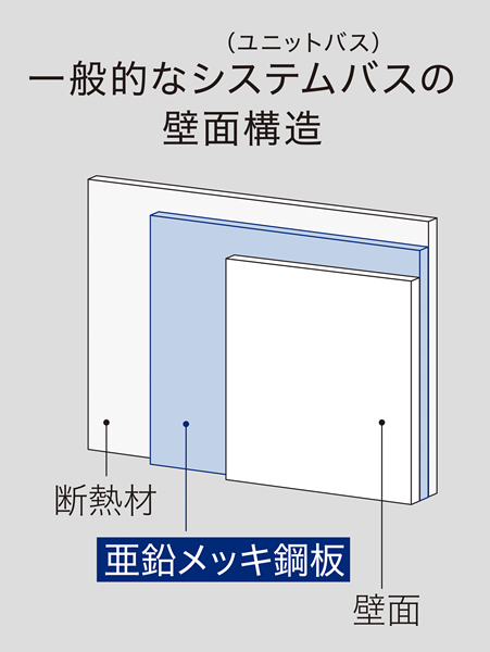 使用できない浴室の壁タイル・ガラス・木等の壁面(鋼板を使用していない浴室壁面)