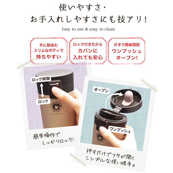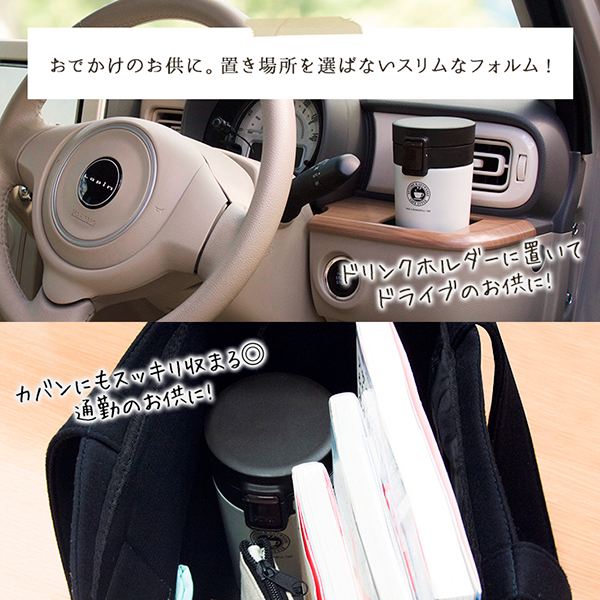スリムなフォルムドリンクホルダーやカバンにスッキリ収まり、持ちやすいスリムタイプ。