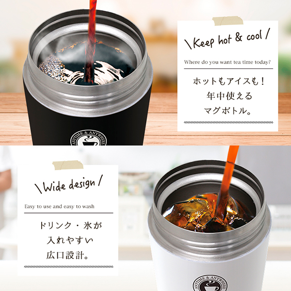 飲み物を冷たいまま、温かいまま持ち運べて、外出先でも美味しくティータイムを楽しめます。