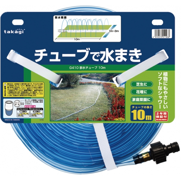 タカギ スプリンクラー 散水チューブ 10m G-410 | シャワー 散水 ホース ソフト 広範囲 ホースリール 接続 ニップル付き ガーデニング 芝生 水やり 遠くまで 2年保証