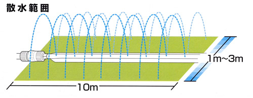 長さ10m×幅1〜3mの範囲に散水可能。