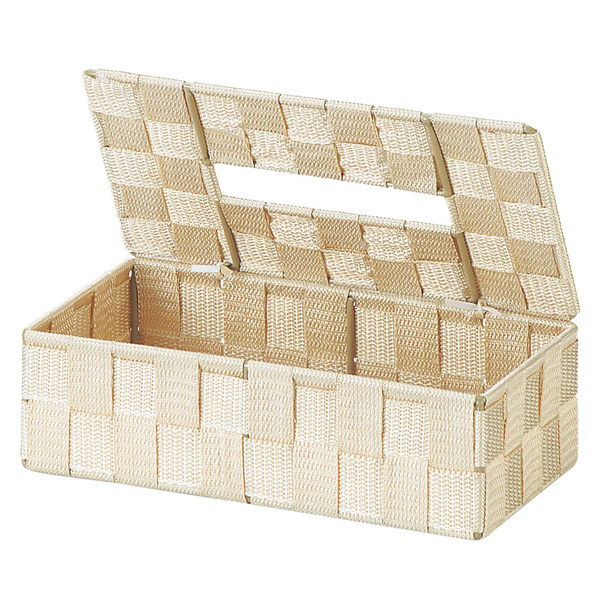 ティッシュケース ティッシュBOX ベージュ 58-75BG | 小物収納バスケット PP編み ティッシュボックス
