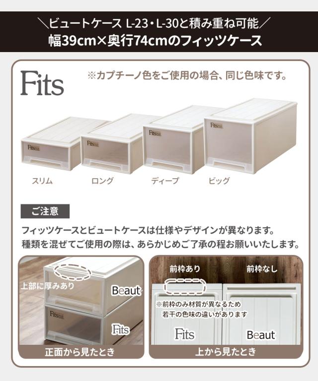 Fitsケースに重ねて使える従来のフィッツケース(スリム / ロング / ディープ / ビッグ)と積み重ねできます。カプチーノ色の場合は同色になります。