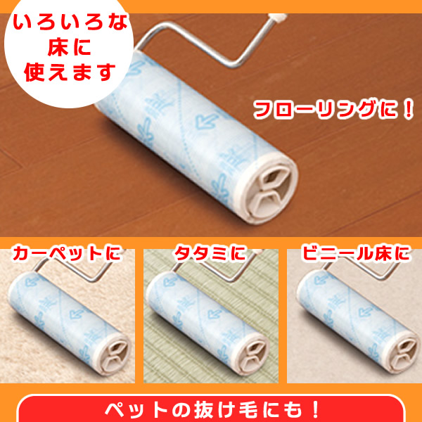 強弱の「ダブル粘着加工」でフローリングではスイスイ、カーペットではグイグイ、ゴミを取ります。