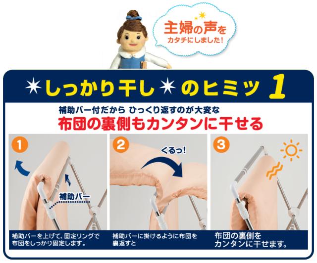 蒲団の裏返しラクラク!面倒な布団の裏返しがラクラクできる、便利な補助バー付き。