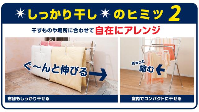 あなたにフィット!幅も高さも伸縮可能。 干すものや、洗濯物の量、置くスペースに合わせて、自在に調節できます。