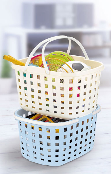 積み重ねて置ける便利な収納スタッキングバスケット。