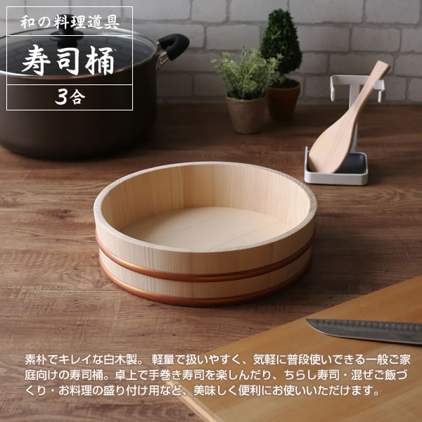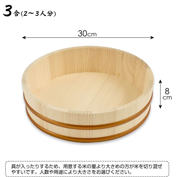 日本製 寿司桶 すしおけ 寿司飯 ちらし 木製 酢飯 飯台 すし桶 3合 日本製 手巻き寿司 稲荷ずし 混ぜご飯 家庭用 和風 使いやすい 便利 タガ 直径30 高さ8 cm センチ 2〜3人分 鮨 鮨桶 SUSI Sushi tub すし スシ おすすめ オススメ 天然木 人気 台所用品 台所グッズ キッチングッズ キッチン用品 4977605010801