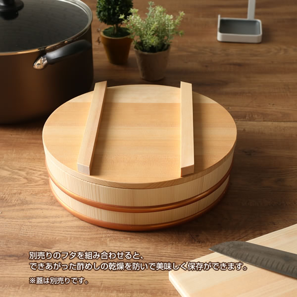 別売りのフタを組み合わせると、できあがった酢めしの乾燥を防いで美味しく保存ができます。