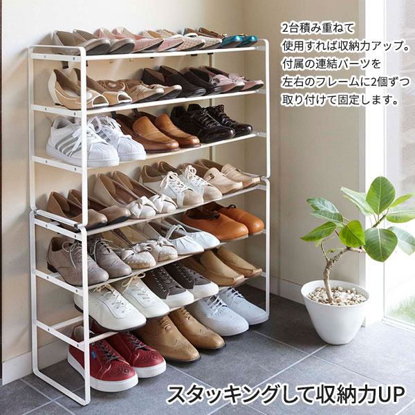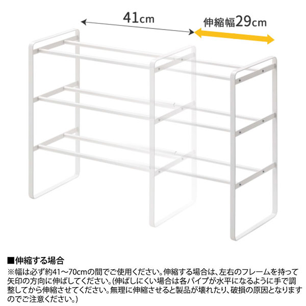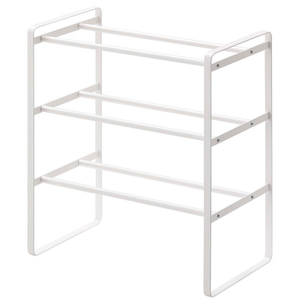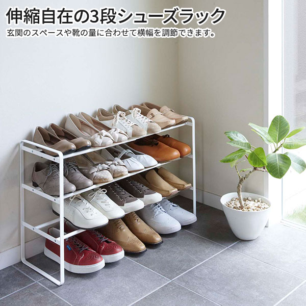 山崎実業 靴 収納 ラック フレーム 伸縮シューズラック 3段 ホワイト 7555 | 伸縮 靴箱 玄関 おしゃれ くつ 下駄箱