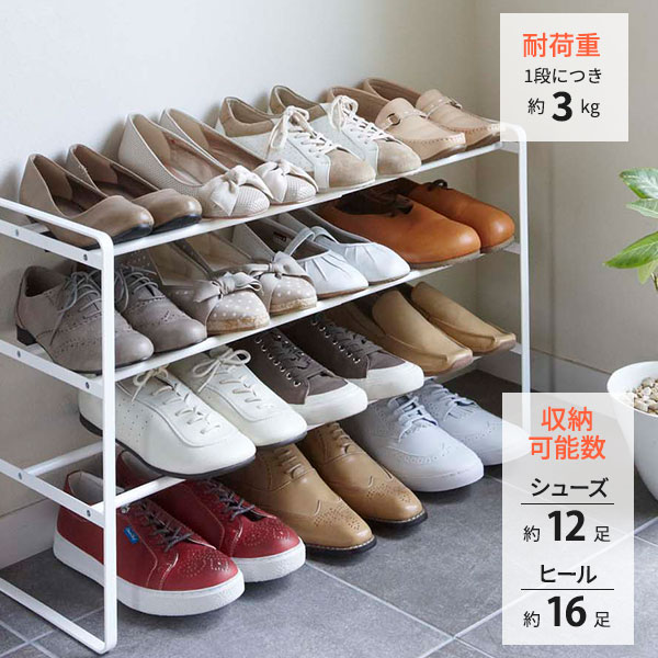 靴をたくさん収納できる3段タイプのシューズラック。