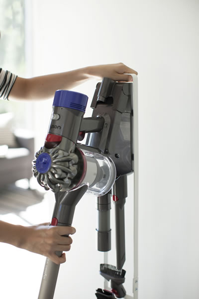壁に穴を開けずにコードレスクリーナーをスリムに収納