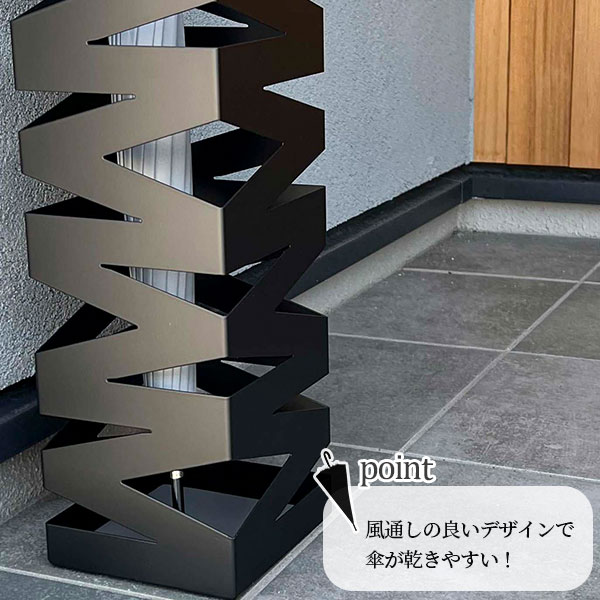 山崎実業 傘立て ROCK ロック かさたて ブラック 6206 | 傘 収納 玄関 エントランス 角型 四角 スチール製 おしゃれ モダン アート デザイン コンパクト スリム 省スペース シンプル スタイリッシュ カサ かさ 雨 長傘