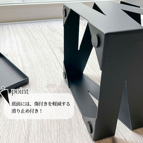 滑り止め付き底面には滑り止めが4個所ついており、接地面への傷付きを軽減します。