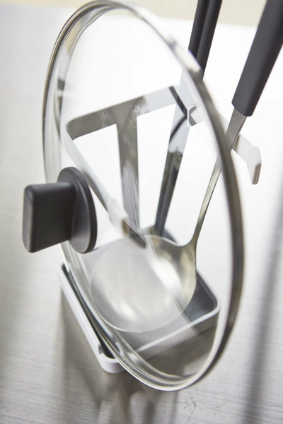 お玉置き フタ立て 鍋蓋ホルダー 鍋蓋スタンド お玉スタンド キッチンツール 収納 山実 yamazaki キッチンツール 調理器具 料理道具 調理道具 一時置き ラック タブレット iPad スマホ 菜箸 ターナー トング しゃもじ フライパンカバー 俎板 まな板 コンロ周り シンク周り 卓上 ちょい置き 受け皿取り外し キッチン用品 キッチングッズ 台所用品 台所グッズ すっきり 片付く 新生活 一人暮らし 賃貸キッチン 家事楽 家事ラク 時短家事 便利グッズ 便利アイテム シンプル スリム コンパクト 省スペース 人気 おすすめ 使いやすい おしゃれ インテリア すっきり 片付く スチール製 白 4903208028004