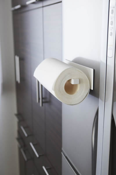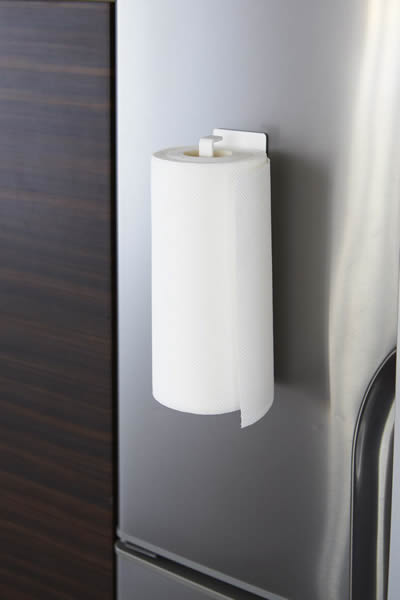 冷蔵庫の扉や側面にマグネットで簡単に取り付けできるキッチンペーパーホルダー。