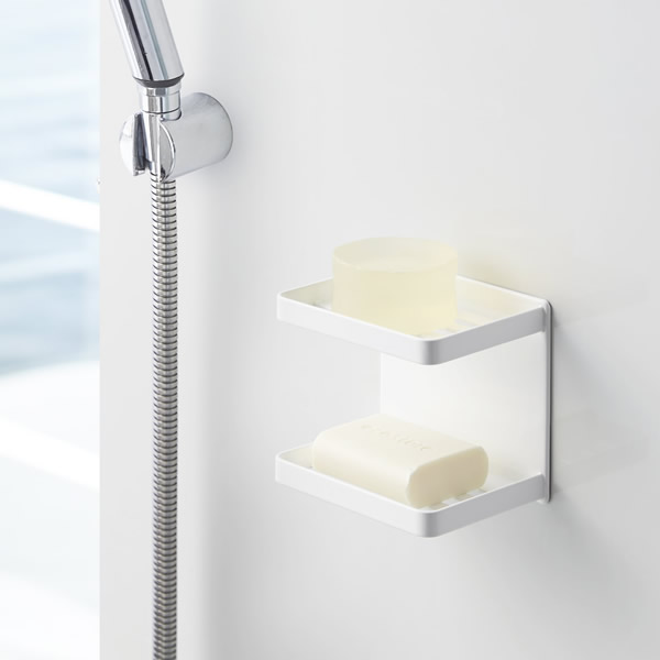 石鹸トレー 石鹸ケース 石鹸置き 石鹸ホルダー おしゃれ 磁石 浴室 収納 ラック 石けん トレイ 山実 tower タワー マグネット ホルダー ラック トレー 棚 スタンド ソープ 石鹸 2段 収納ラック 浮かせる収納 壁面収納 デッドスペース 有効活用 空間活用 衛生的 ぬめり防止 簡単取付 ディスペンサーボトル ボディソープ 洗顔料 化粧品 水切れ スリット 幅12 奥行8.5 高さ10 センチ cm 耐荷重各500g スチール製 滑り止め付き シンプル スマート スタイリッシュ モダン 人気 おすすめ おしゃれ スリム コンパクト 省スペース 機能的 使いやすい 便利 白 お風呂用 4903208038096
