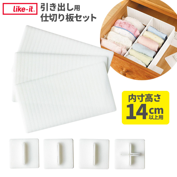 Like-it 仕切り板 L ホワイト ST-05 | 仕切り パーテーション 引き出し 間仕切り サッ取り 下着 タオル 衣類 小物 収納