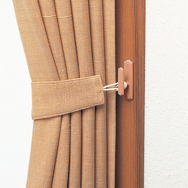 粘着テープで取り付けるタイプのカーテンふさ掛け2個入りです。