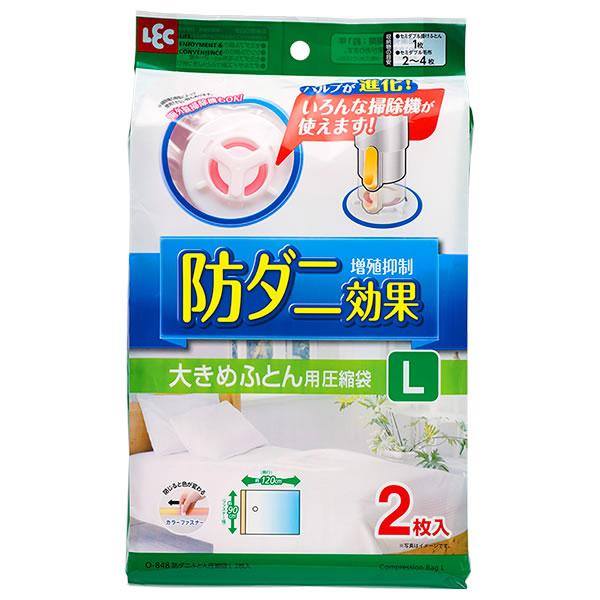 布団圧縮袋 大きめふとん圧縮袋 L 2枚入 O-848 | 収納袋 ふとん セミダブル 掛け布団 ロック式バルブ 掃除機対応 防ダニ
