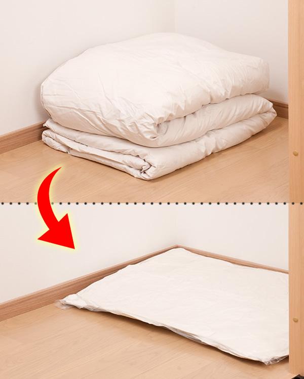 空気を抜いてコンパクトに収納できる布団圧縮袋。大きめふとん用。