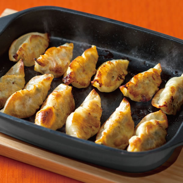 ふっくら蒸し焼きができるフタ付きふっくら蒸し焼きができる蓋付だから、餃子やオムレツ作りにもぴったり。