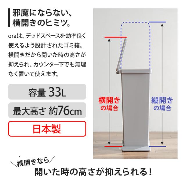 ゴミ箱ごみ箱 ora オルア ペダル 33L 分別 ダストボックス 横開き ヨコ型 タテ型 横型 縦型 スリム ふた付き 日本製 おしゃれ キッチン