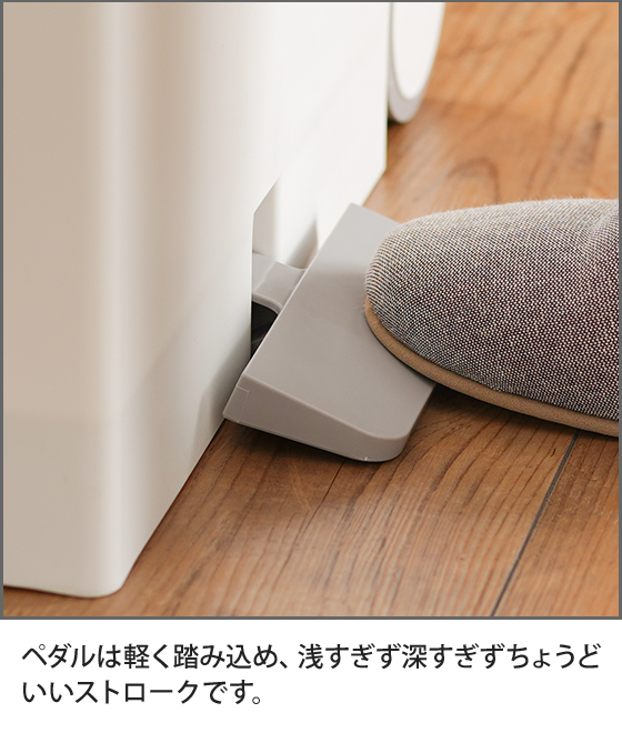 ・選べる縦位置、横位置のフタ開閉ペダル。