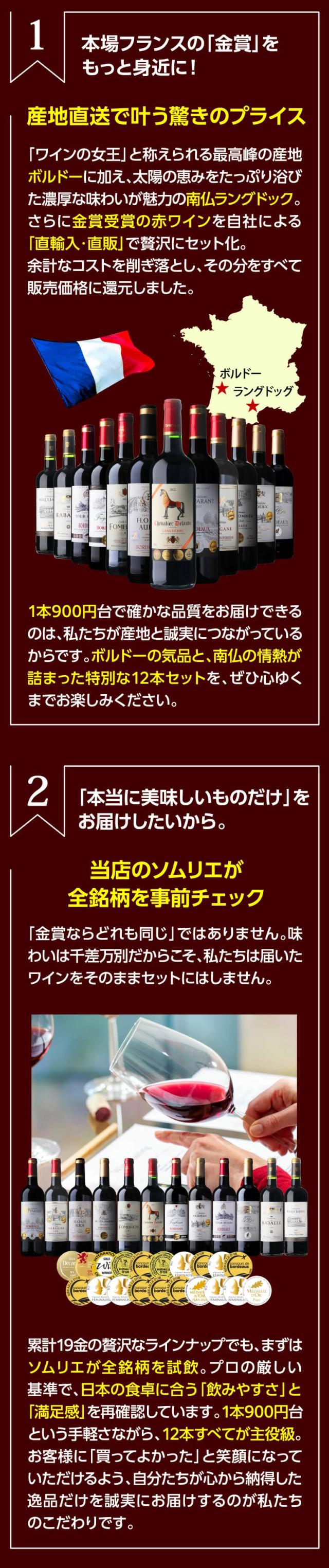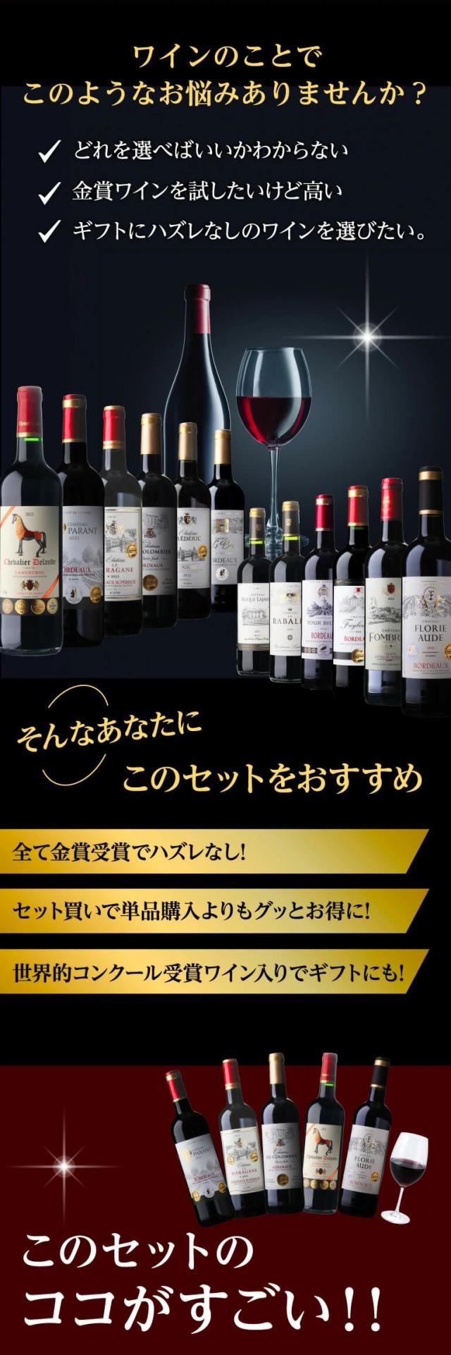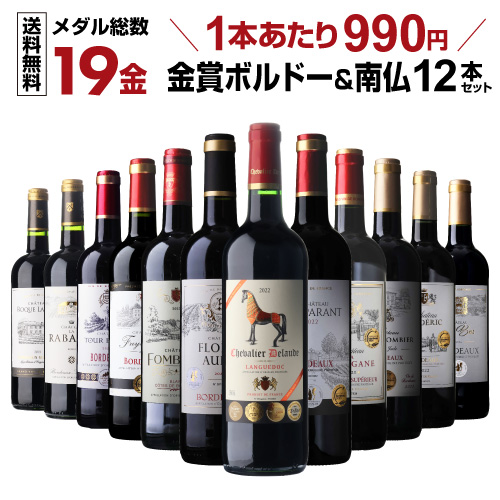 ワイン メダル総数19金!すべて金賞ボルドーand南仏12本セット 単品合計 47パーセント オフ 43弾 長S