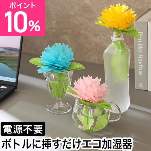 花瓶にお花を生けるように、容器に水を入れて挿すだけのエコな加湿器。フィルターから水分が自然に気化する「自然気化式」なので、電源も電気代も一切必要ありません。