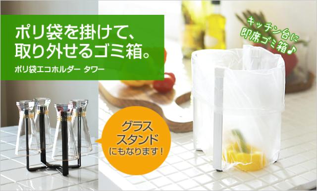 ポリ袋エコホルダー タワー ポリ袋ホルダー 生ゴミ ゴミ箱 グラススタンド