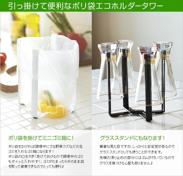 山崎実業 ポリ袋ホルダー ゴミ箱 ゴミ袋ホルダー ポリ袋スタンド ゴミ袋スタンド グラスホルダー グラススタンド キッチンスタンド ポリ袋 ホルダー スタンド グラス キッチン収納 キッチン 台所 シンク上 流し台 収納 yamazaki タワーシリーズ 黒 ブラック 白 ホワイト tower タワー ポリ袋エコホルダー 6787 6788 4903208067874 4903208067881 生ゴミ 袋 ビニール袋 お洒落 生ごみ スリム 小さい 乾燥 卓上 テーブル 折りたたみ 折り畳み コンパクト
