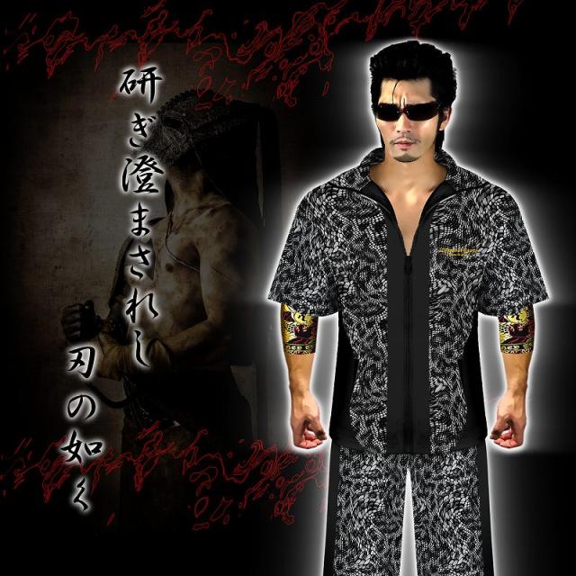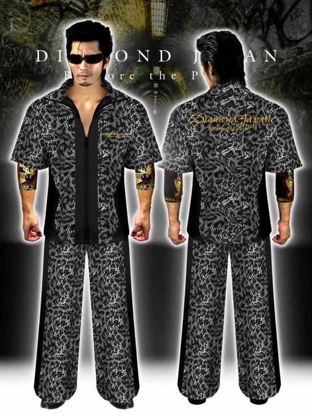 刺繍入り 蛇総柄 半袖 セットアップ ジャージ 黒 ヤクザ ヤンキー オラオラ 悪羅悪羅 オラオラ系 上下 服 DJ-140 派手 夏物 メンズ ファ 悪党の店 バースジャパン BIRTHJAPAN