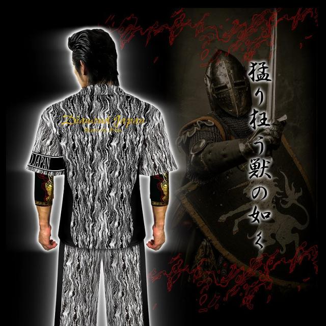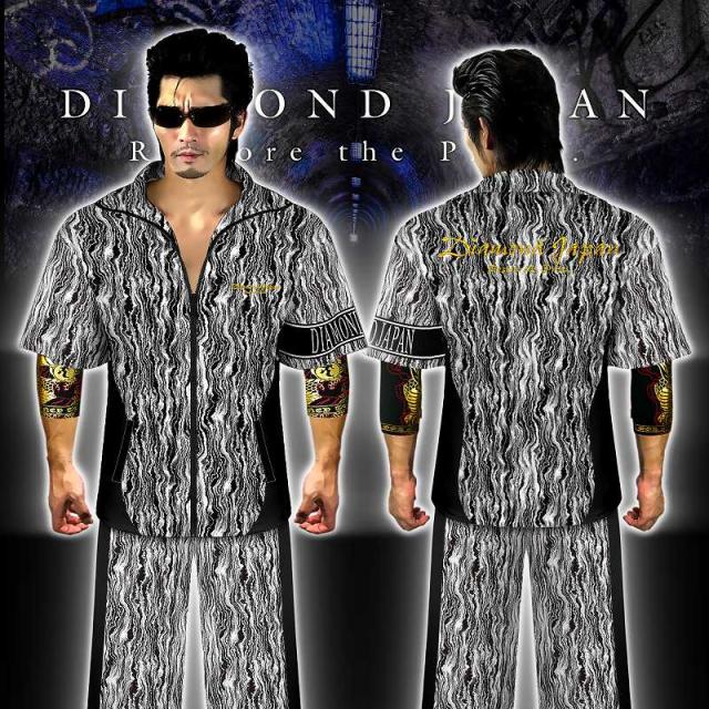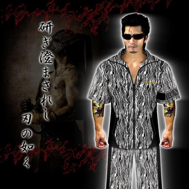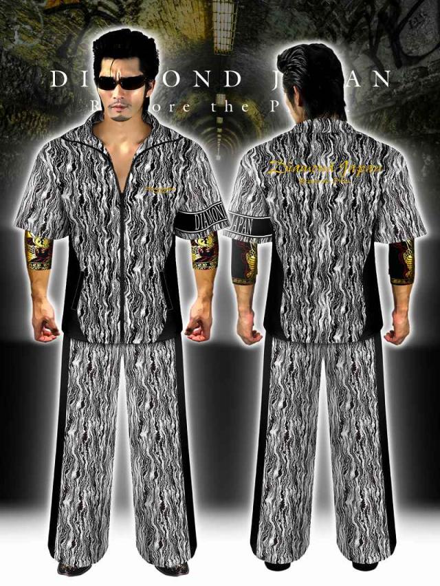 刺繍入り まだら模様 半袖 セットアップ ジャージ 総柄 白×黒 ヤクザ ヤンキー オラオラ 悪羅悪羅 オラオラ系 上下 服 DJ-144 派手 夏 悪党の店 バースジャパン BIRTHJAPAN